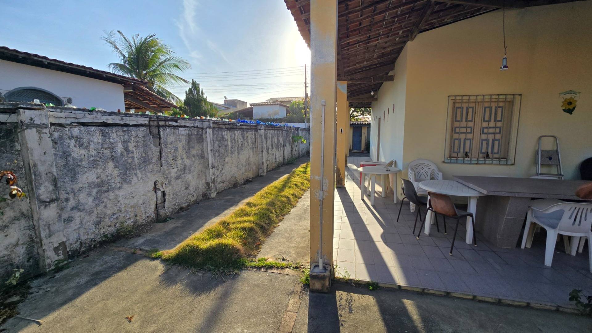 O imóvel conta com amplo espaço externo, rodeado por plantas frutíferas, trazendo um clima de sítio à beira-mar. Possui garagem com capacidade para mais de 10 carros, ideal para receber família e amigos com total conforto.